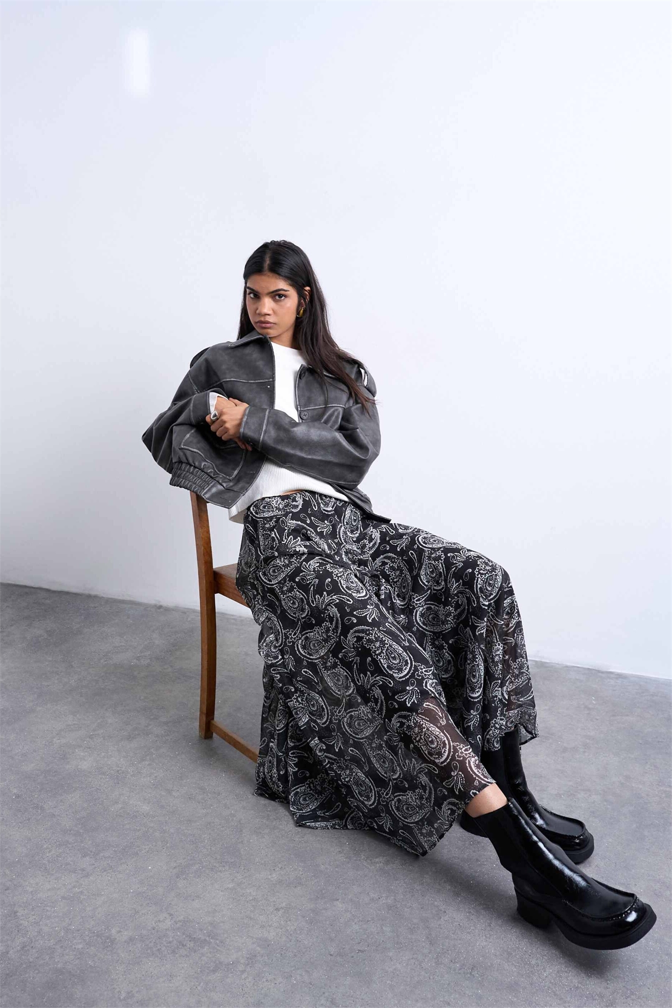Макси-юбка кружевной формы с шифоновыми вставками