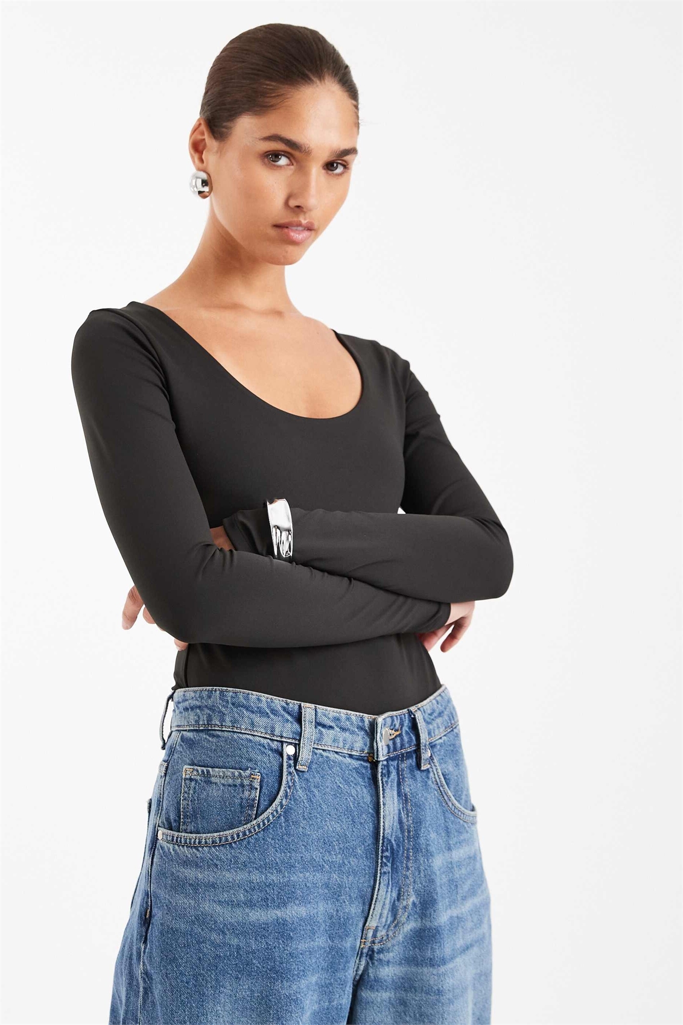 Боди с круглым вырезом и длинными рукавами