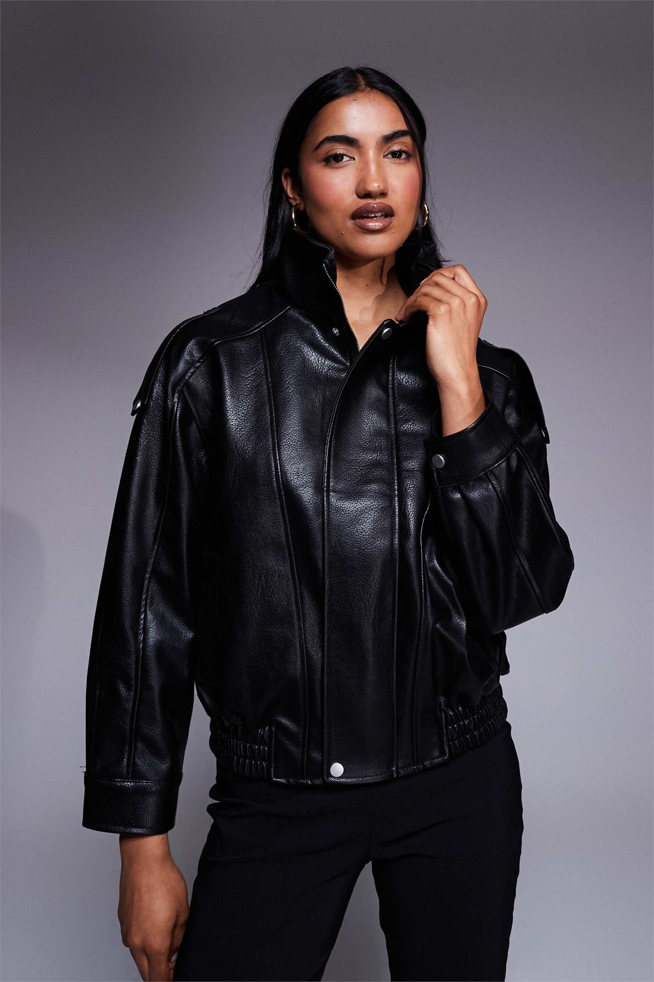 Куртка из искусственной кожи с рукавами «летучая мышь» и воротником-воронкой