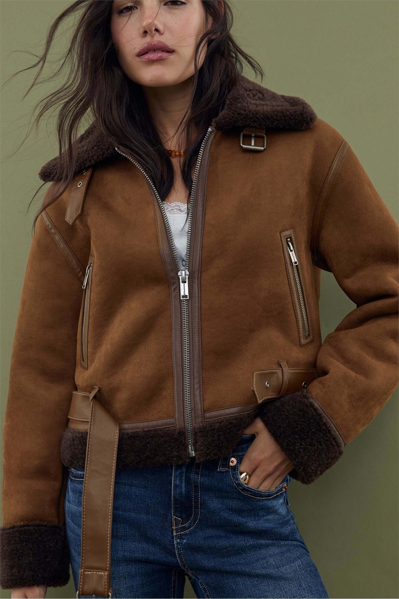 Двусторонняя короткая куртка коричневого цвета