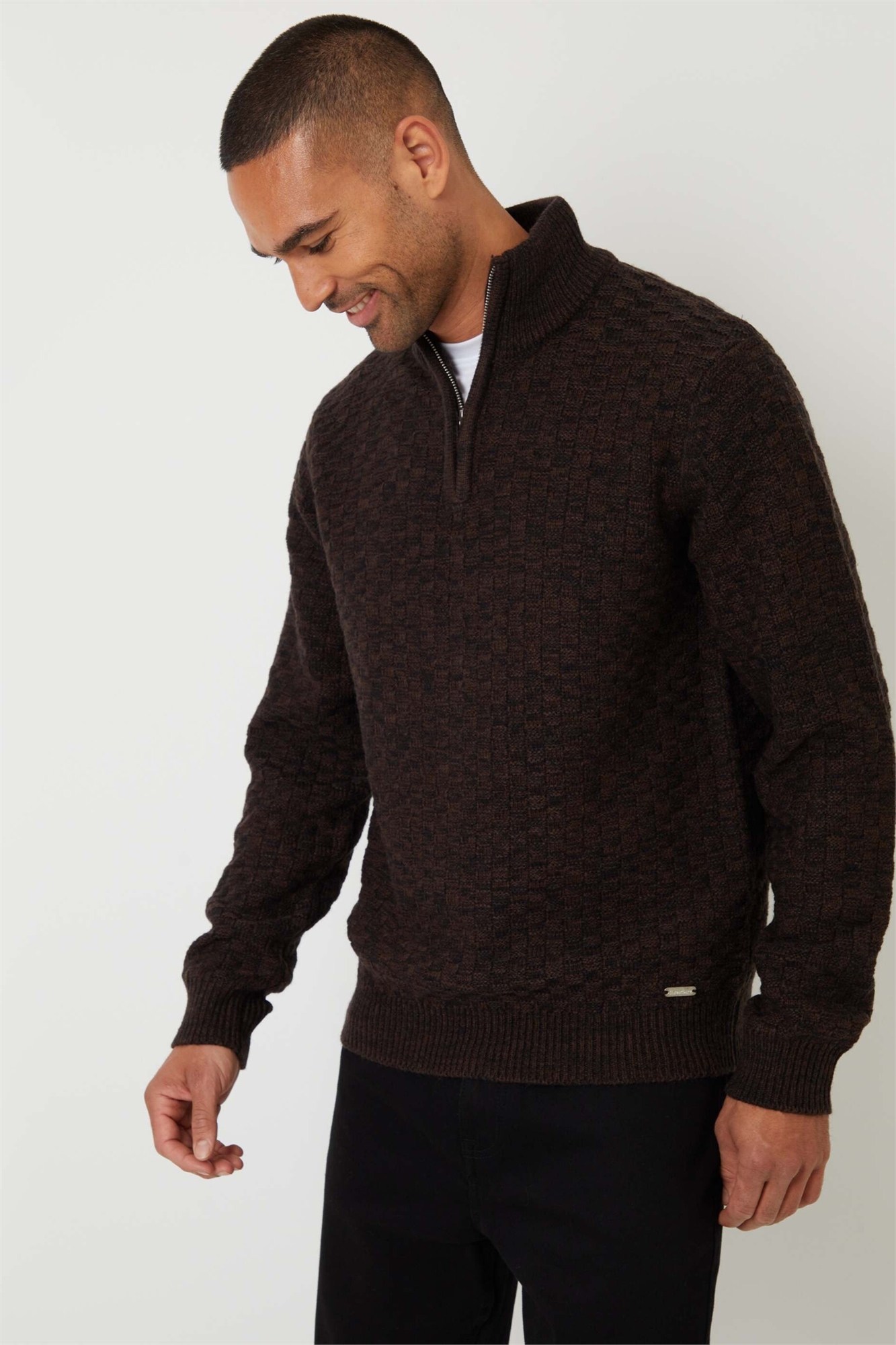 Текстурированный свитер с четвертью молнии и шерстью коричневого цвета