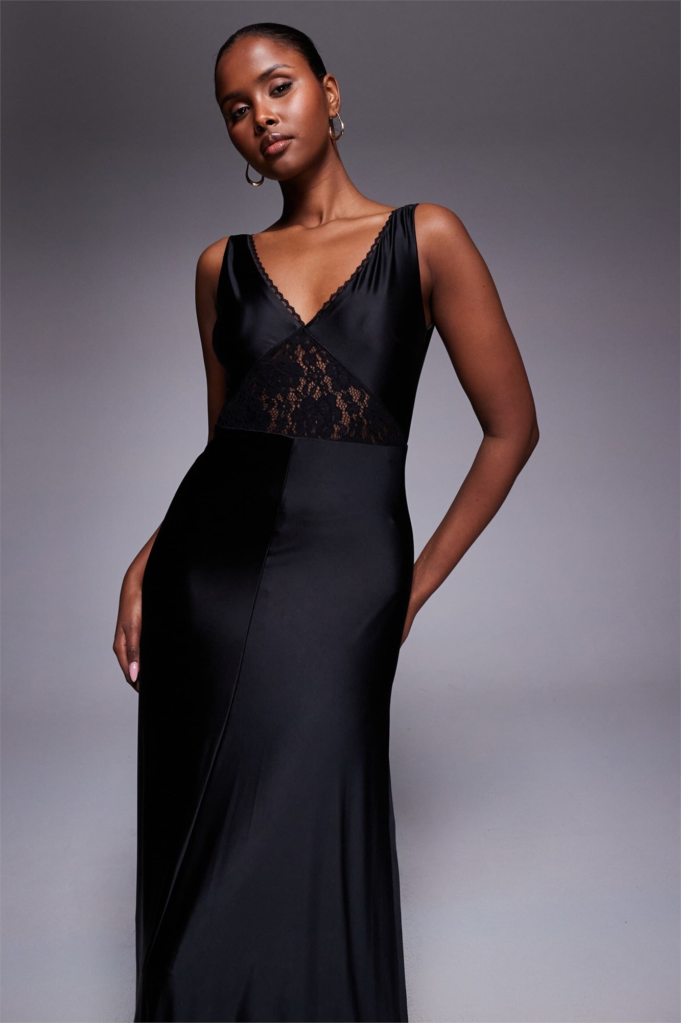 Макси-платье из жидкого джерси с лондонским кружевом и открытой спиной