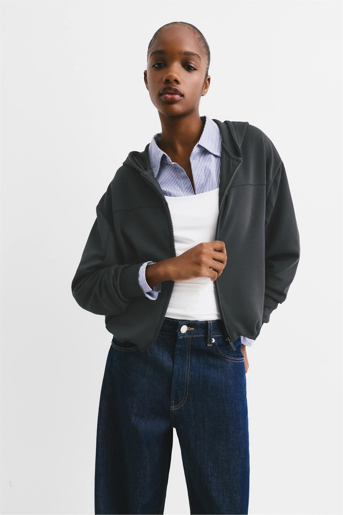 Ткань для толстовок: мягкая и теплая ткань с уютной рельефной текстурой с внутренней стороны. Основной состав: 55% модал, 40% полиэстер, 5% эластан.
