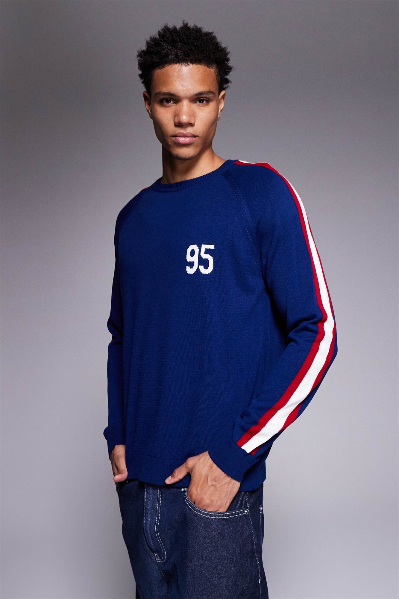 Свободный трикотажный свитер с круглым вырезом и принтом «95»