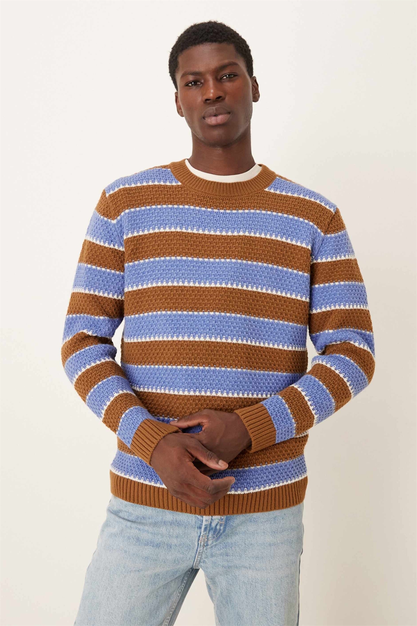 Свободный вязаный свитер с круглым вырезом и полосками