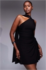 Эксклюзивное двухслойное облегающее мини-платье-скатер с одним плечом и шарфом