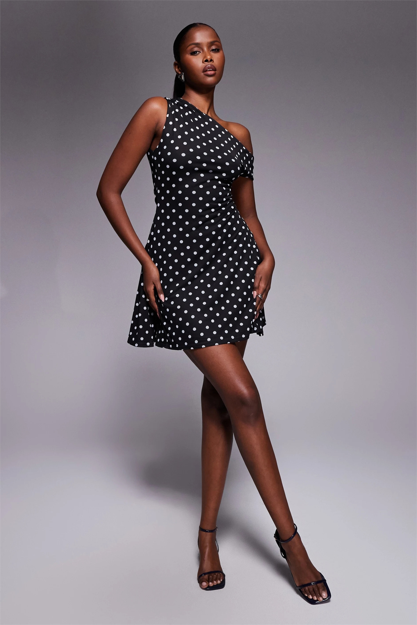 Эксклюзивное мини-платье-скатер с открытыми плечами из двухслойной эластичной сетки