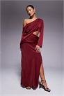 Макси-платье с заниженной линией плеч и вырезом на талии