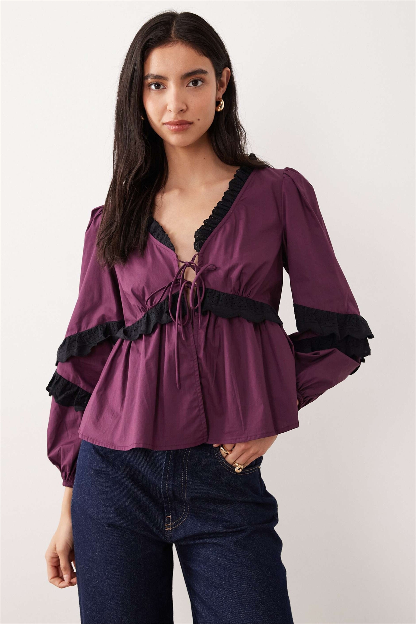 Блузка в стиле бохо с рюшами и вышивкой, с длинными рукавами