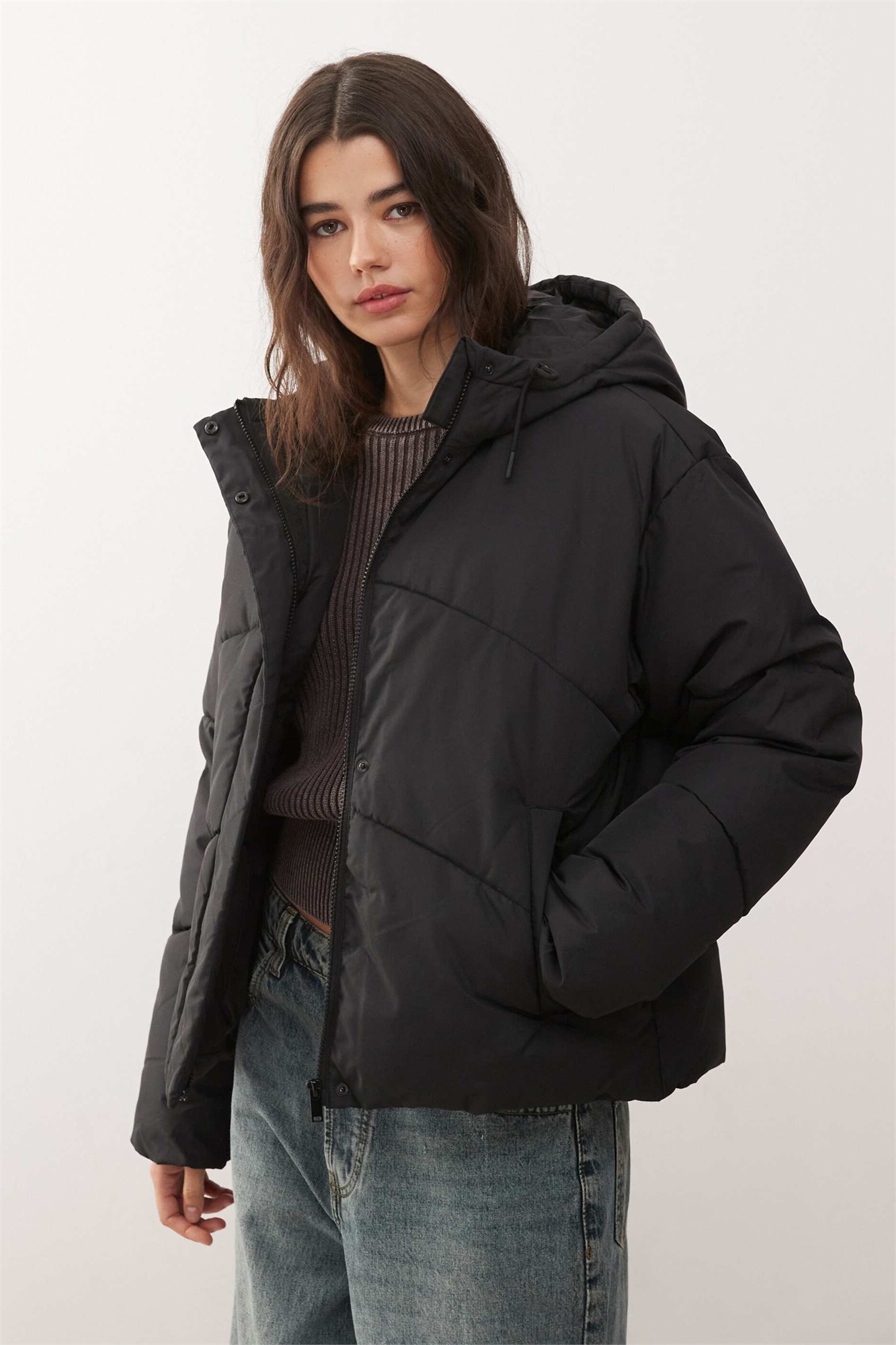 Куртка-пуховик с капюшоном черного цвета