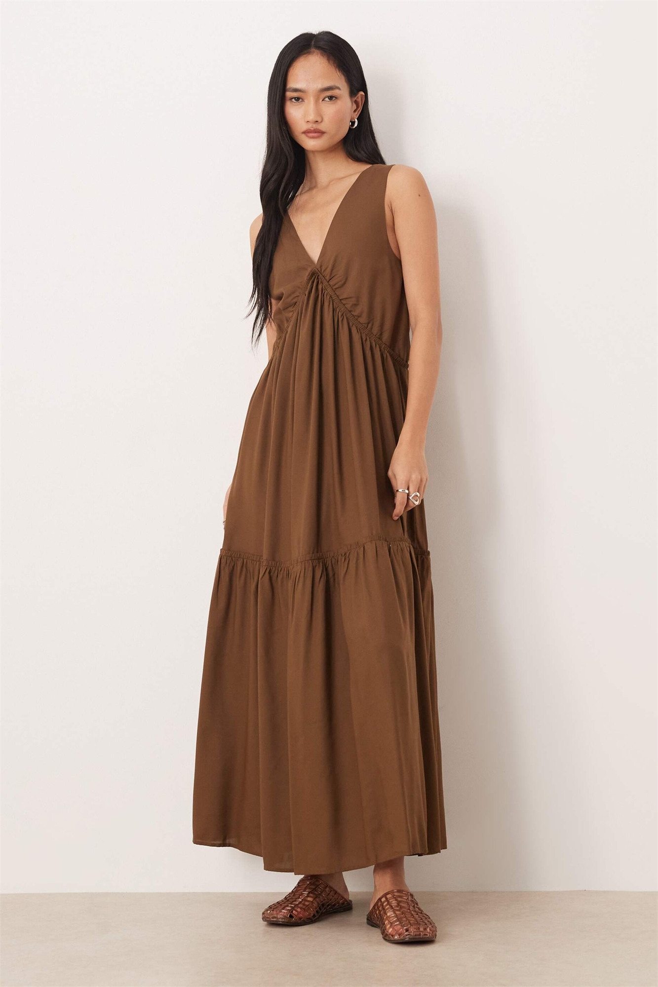 Макси-платье с V-образным вырезом и трапециевидным силуэтом