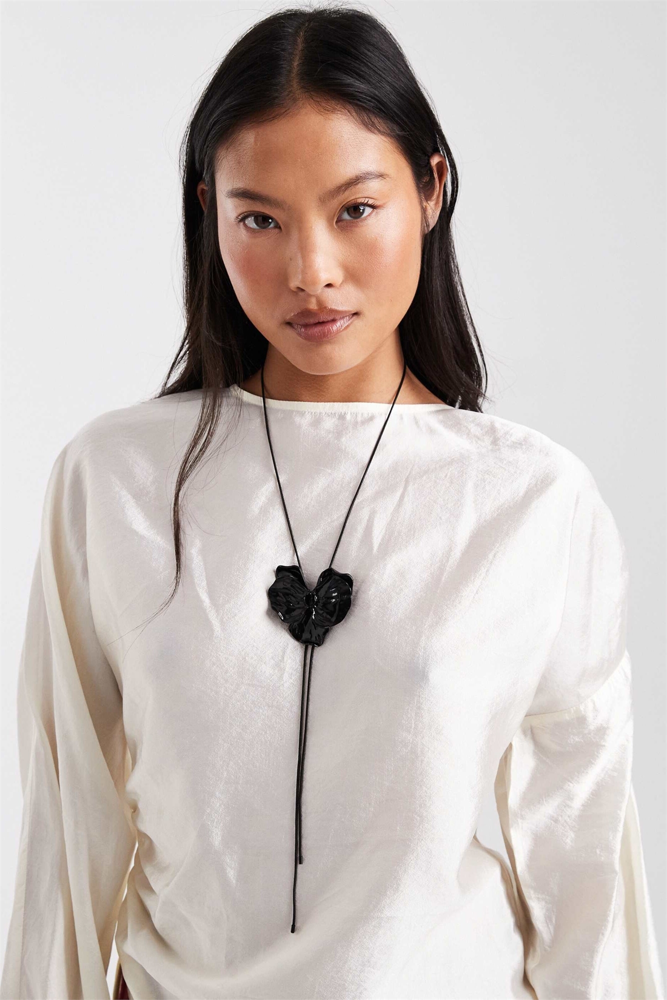 Ожерелье «Лариат» с чёрной цепочкой и чёрным цветочком