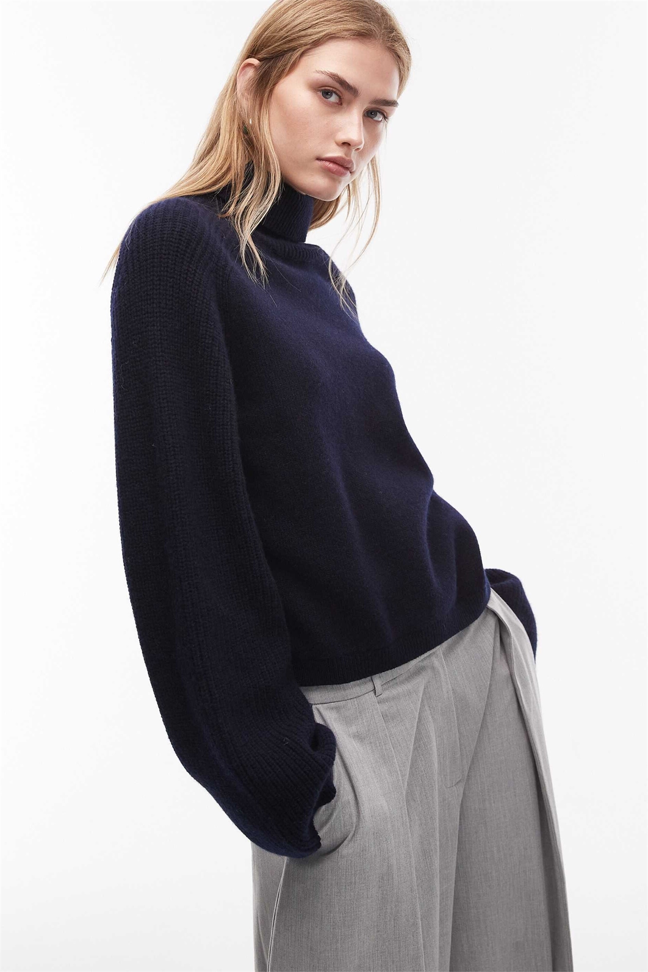 Свитер с высоким воротником из шерсти с ребристой вязкой