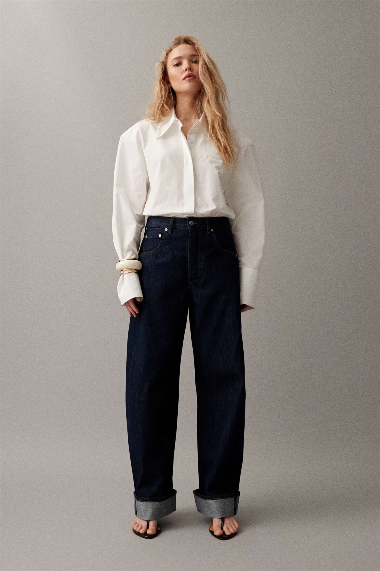 Джинсы с зауженным кроем и отворотом на подол