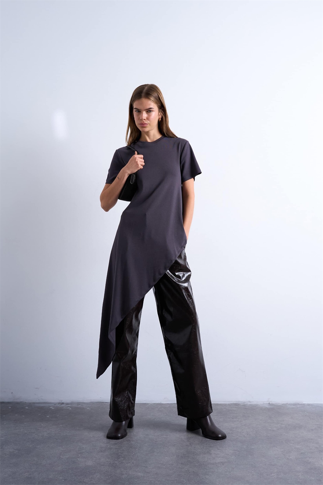 Облегающая туника с асимметричным вырезом и короткими рукавами