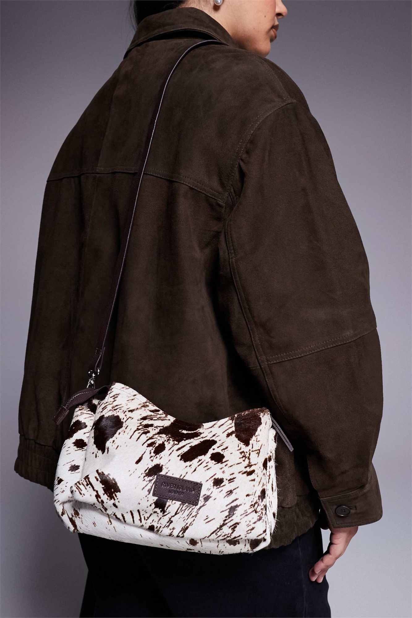 Сумка через плечо из кожи с коровьим принтом и натуральным ворсом