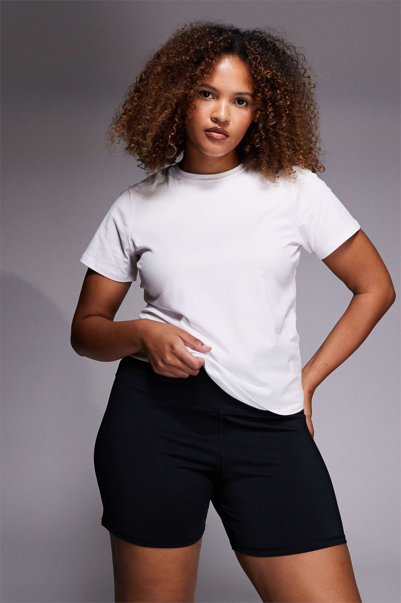 Спортивная одежда: гладкая и эластичная ткань Состав: 81% полиэстер, 19% эластан.