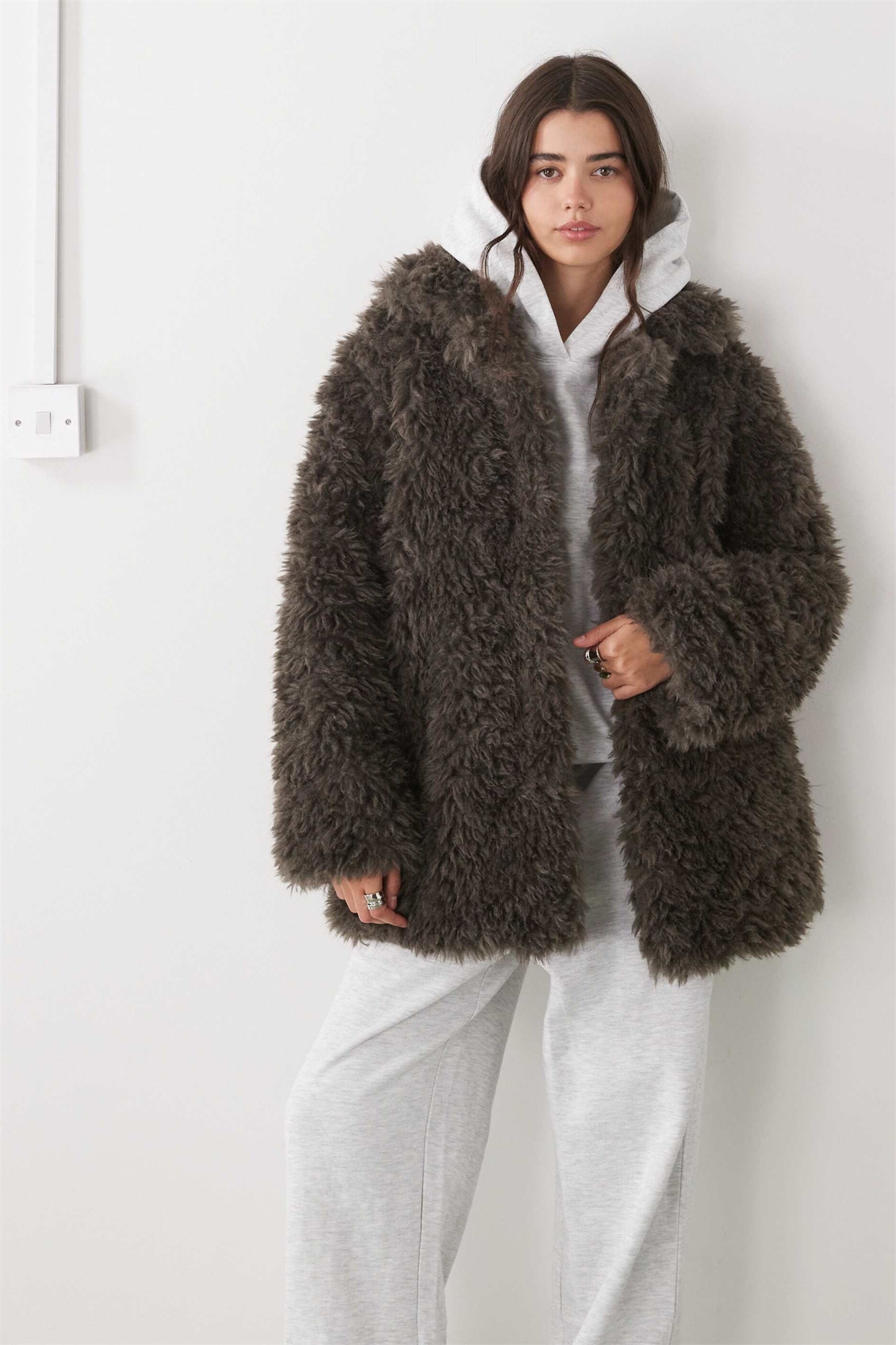 Широкое пальто из искусственного меха