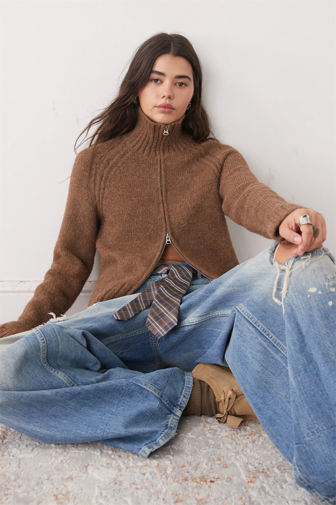Кардиган из шерстяной смесовой ткани с ворсистой поверхностью и застежкой-молнией