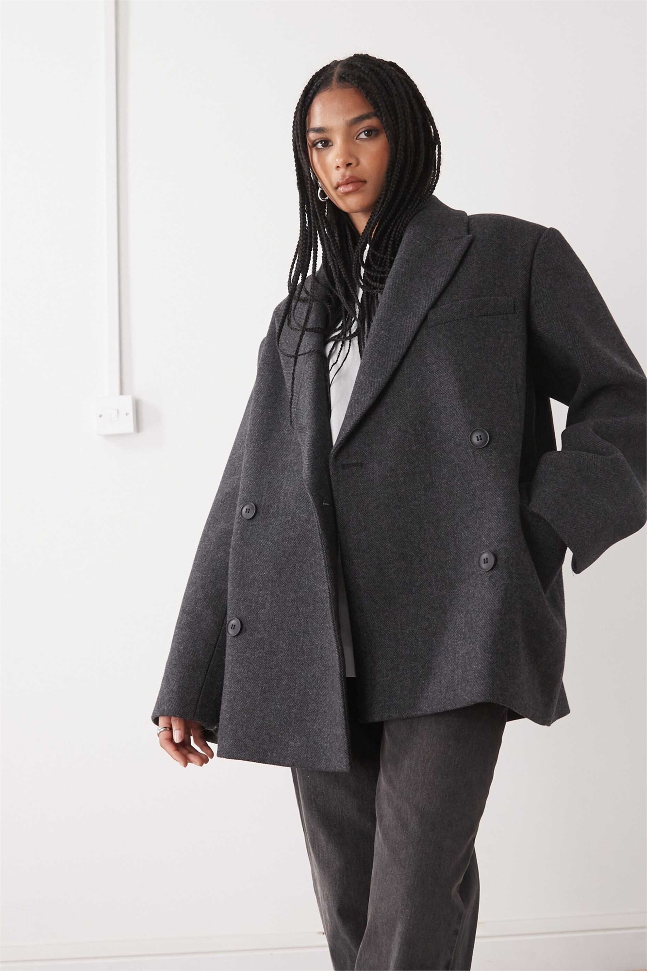Блейзер свободного кроя из смешанной шерсти с двойной застежкой