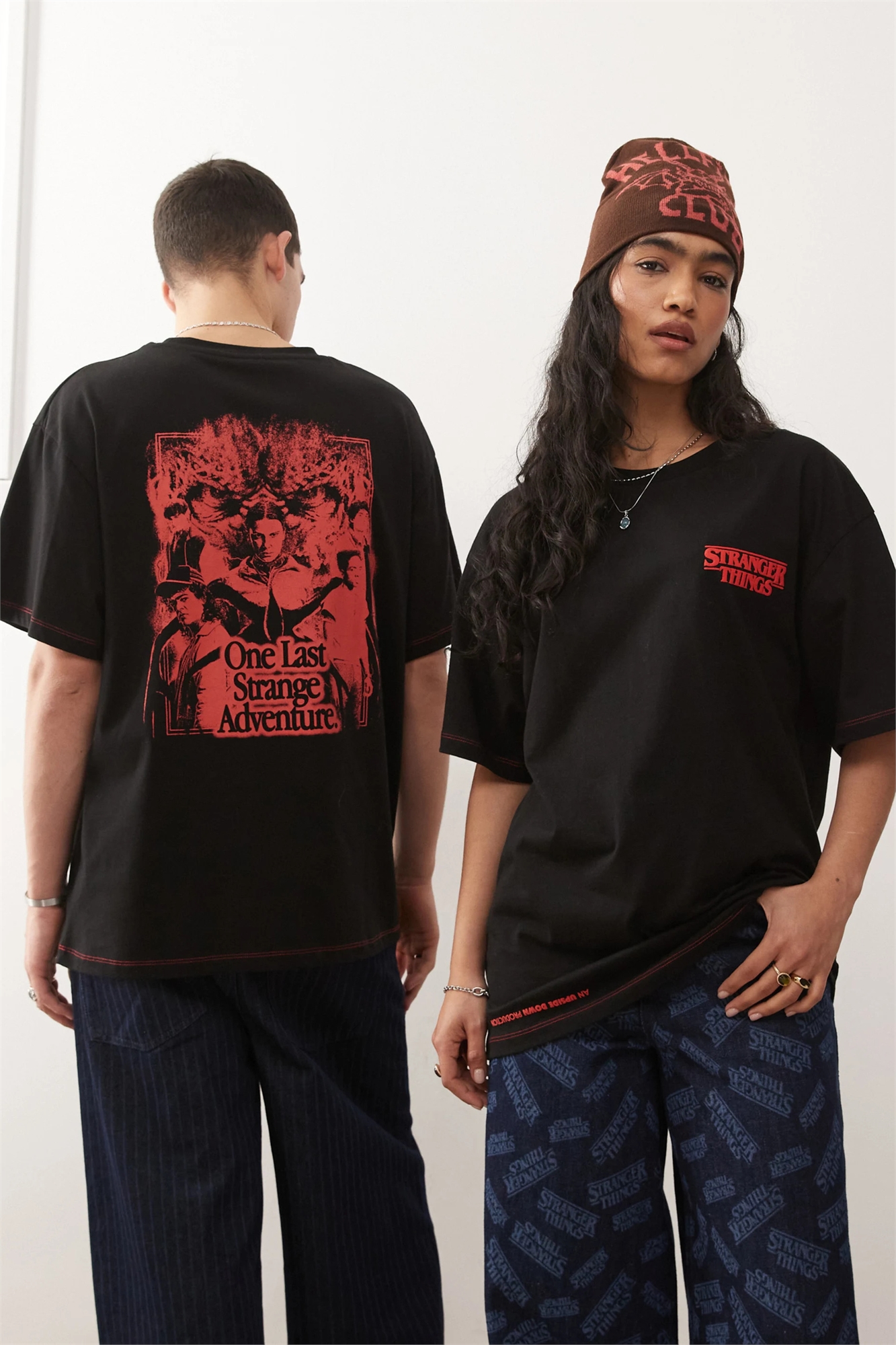 X Унисекс-футболка оверсайз «Очень странные дела» с принтом персонажа на спине