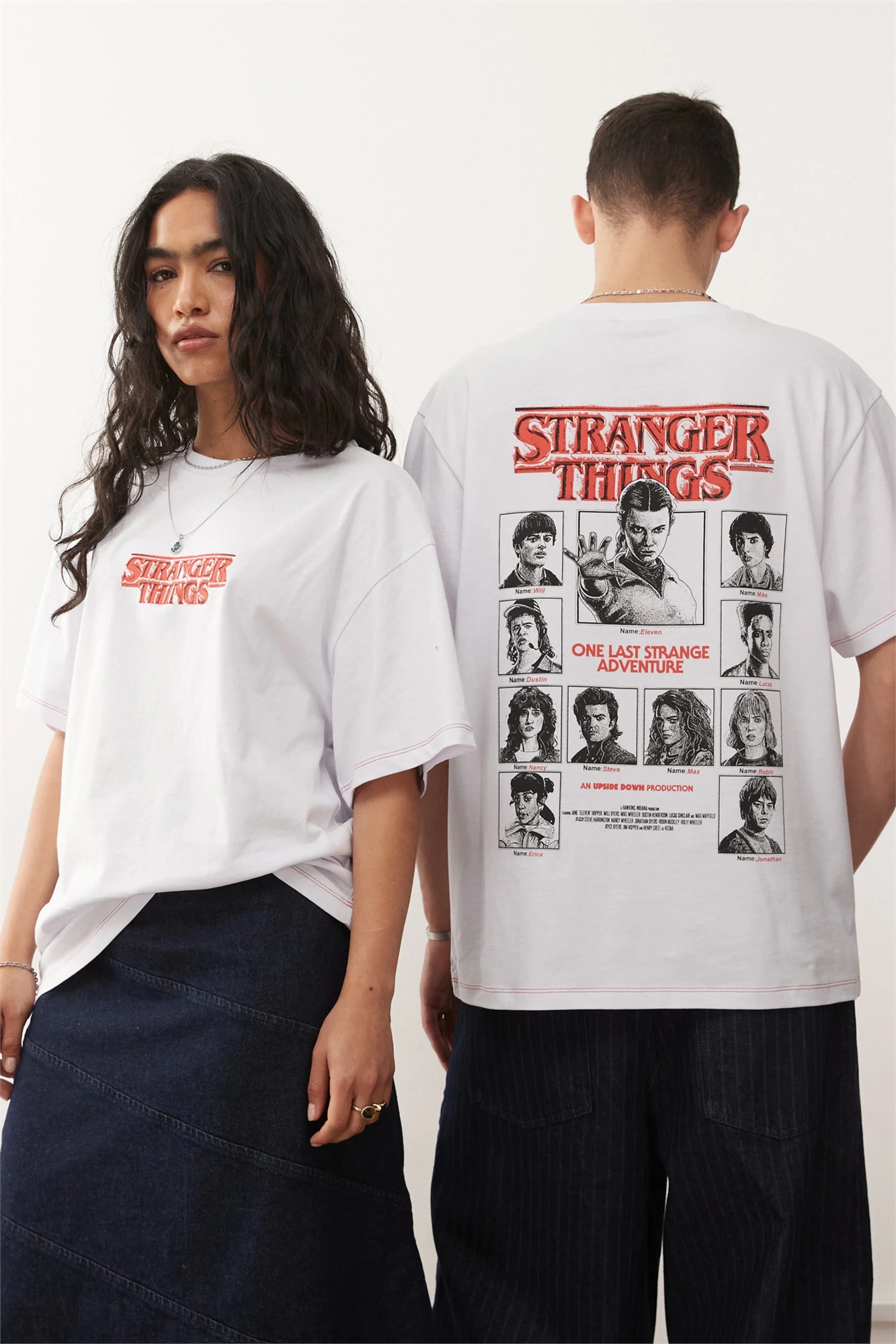 X Унисекс-футболка оверсайз «Очень странные дела» с принтом персонажа на спине