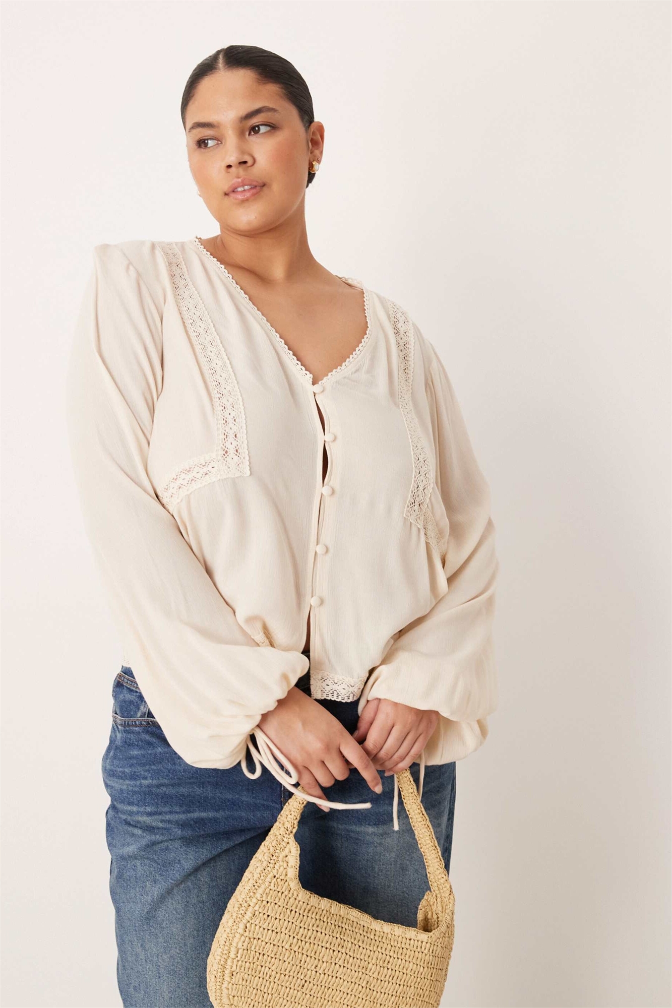 ASOS DESIGN Curve: блузка с текстурированной поверхностью и кружевными вставками, с длинными рукавами