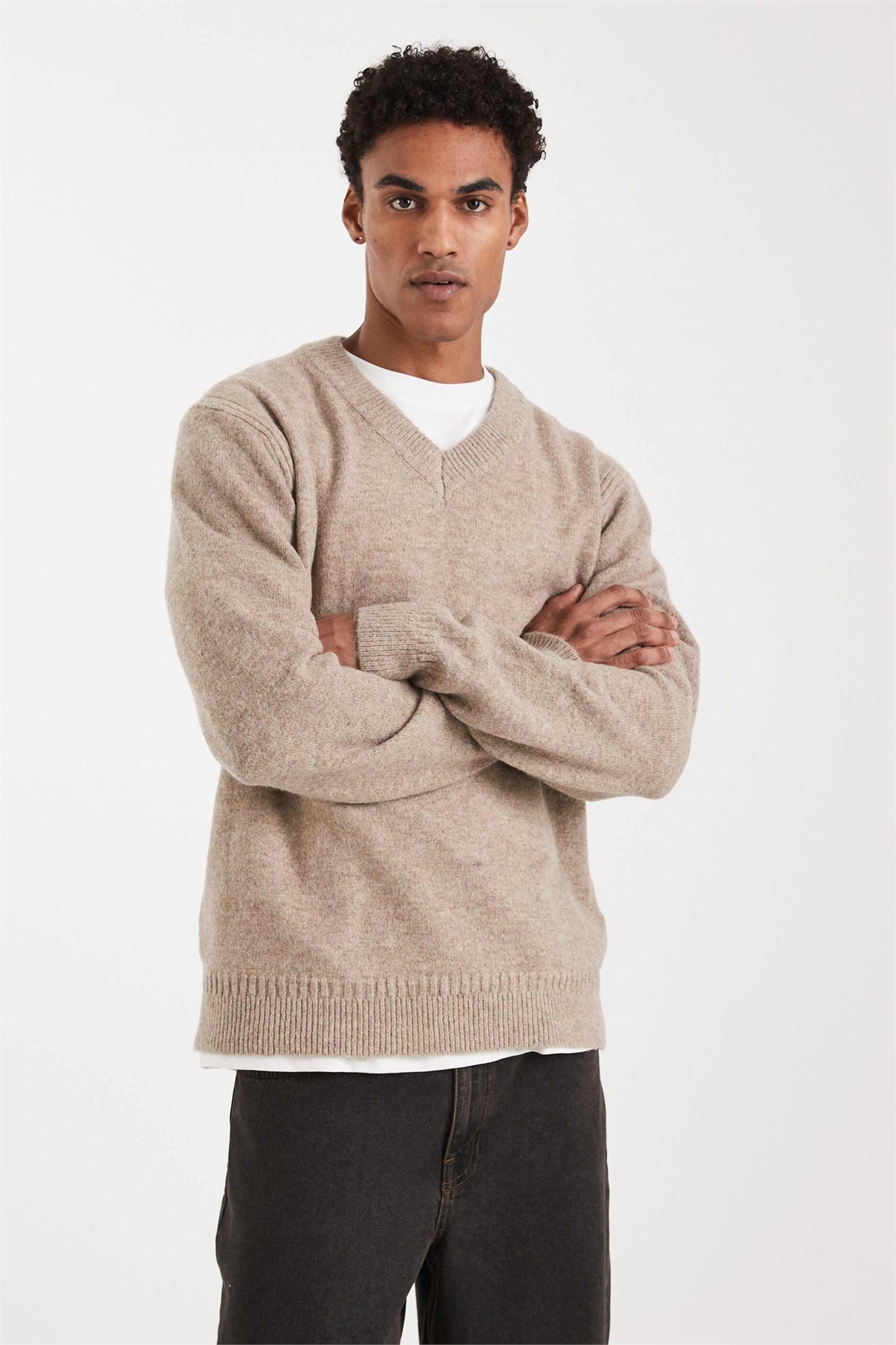 Свитер из ворсованного трикотажа с V-образным вырезом