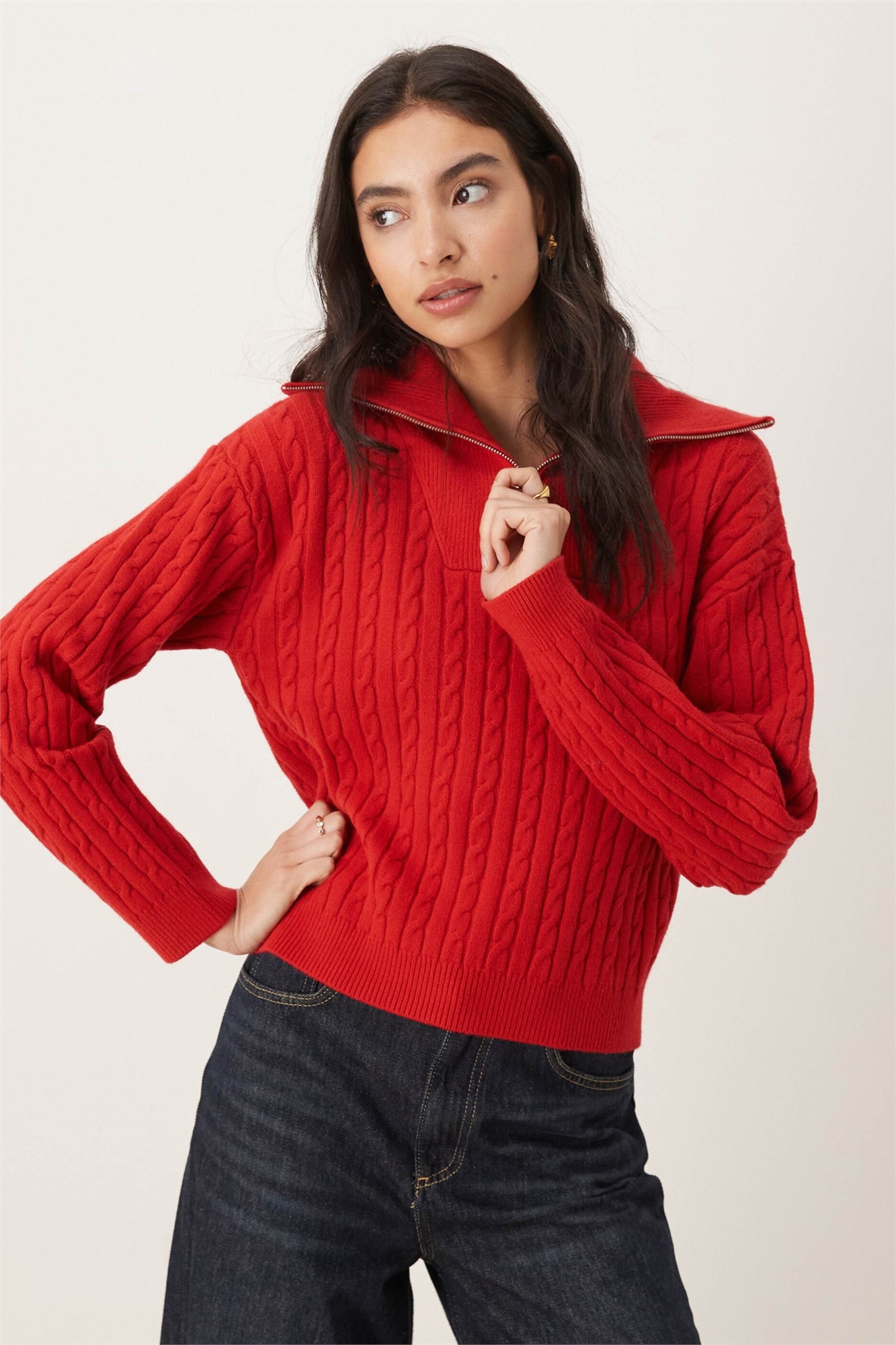 Свитер с четвертью молнии и узором «коса»