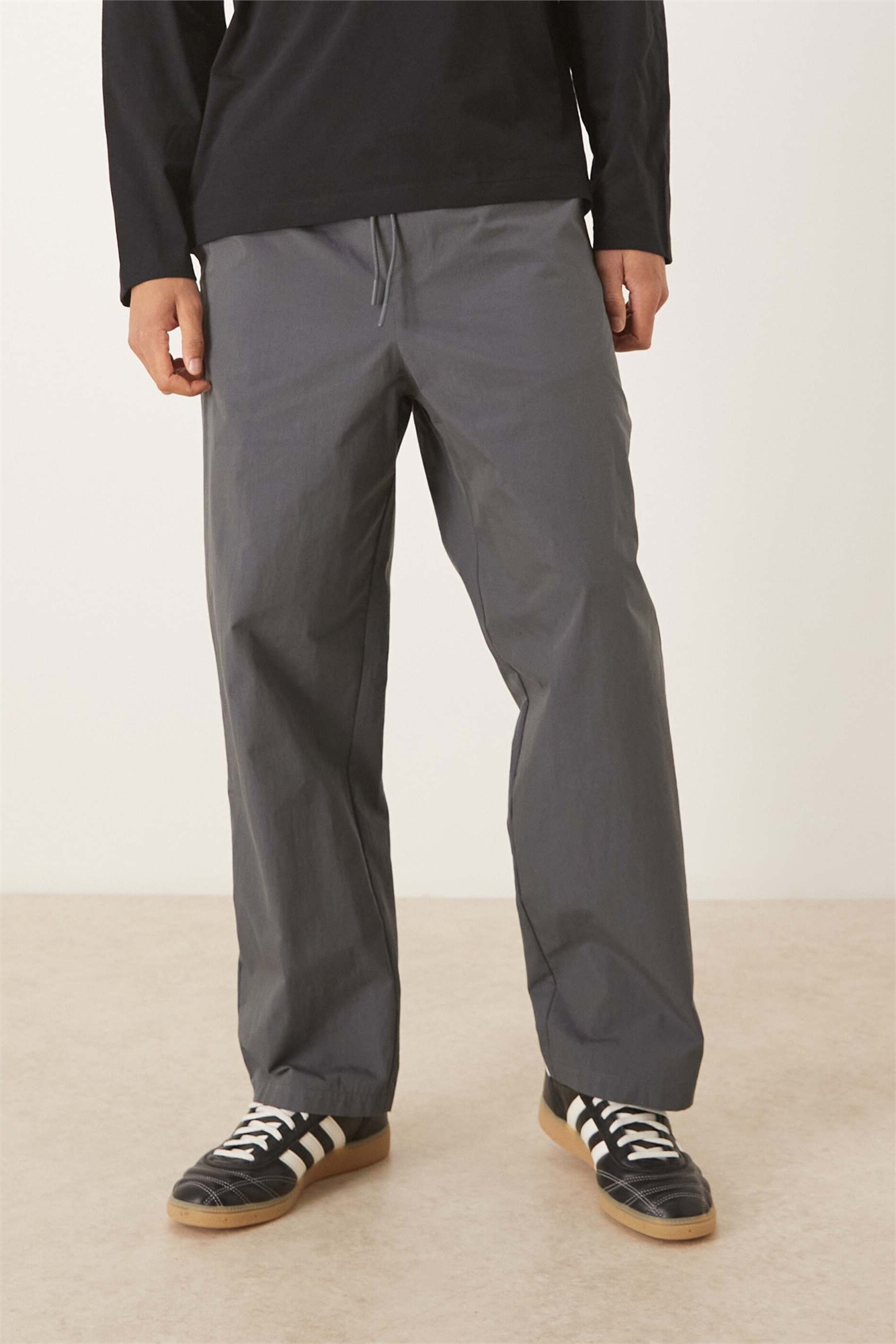 Брюки свободного кроя с зауженными штанинами из нейлона цвета «антрацит»
