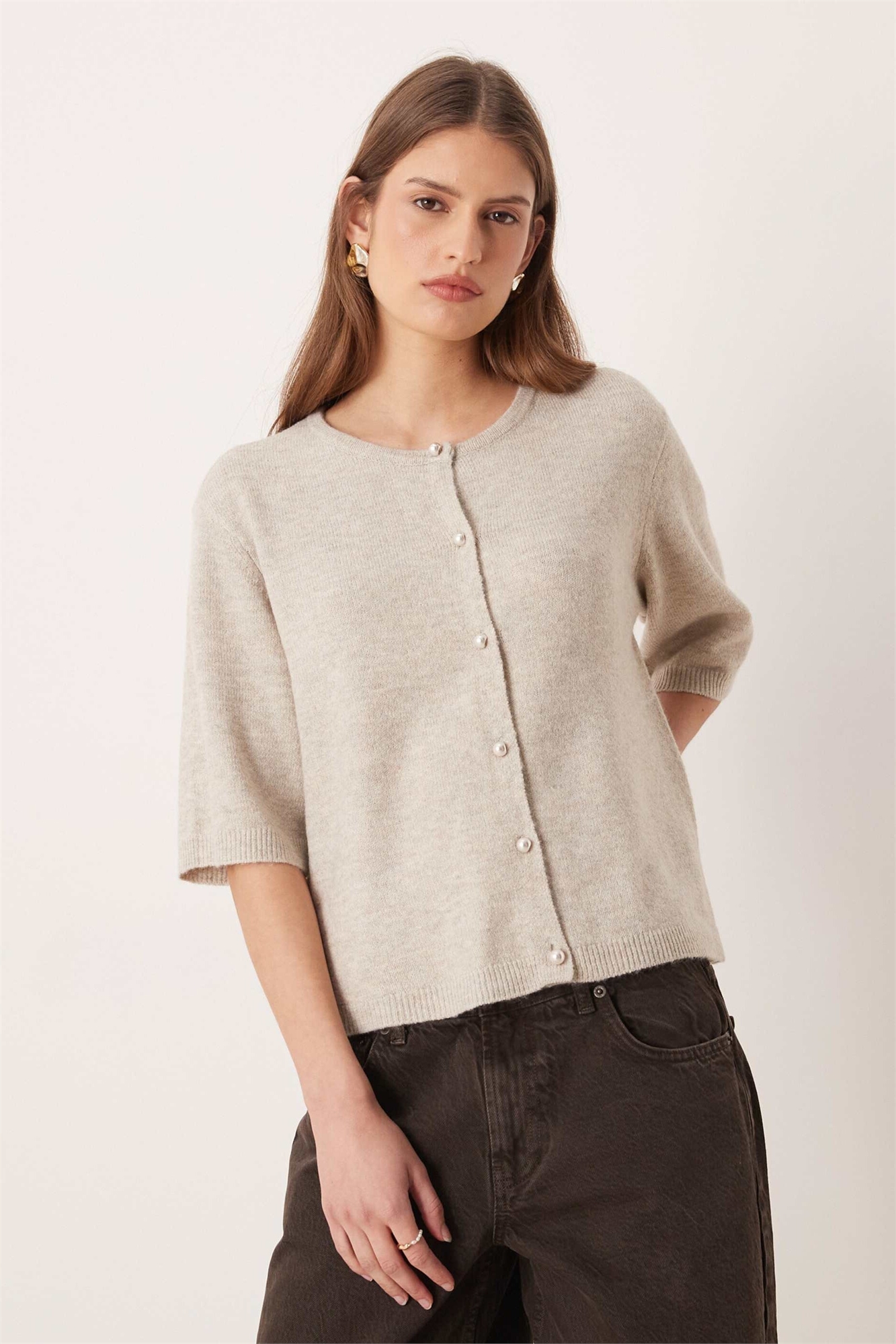 Вязаный кардиган с короткими рукавами и жемчужными пуговицами