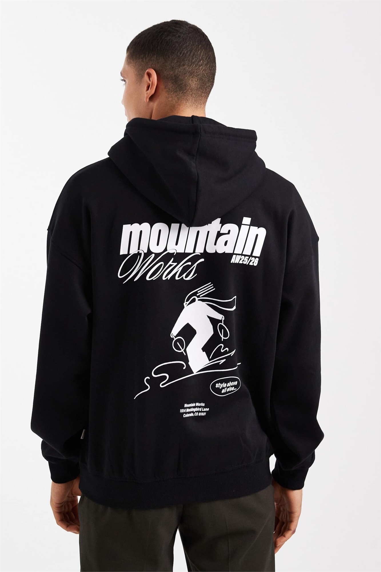 Худи свободного кроя с принтом в виде лыж на спине