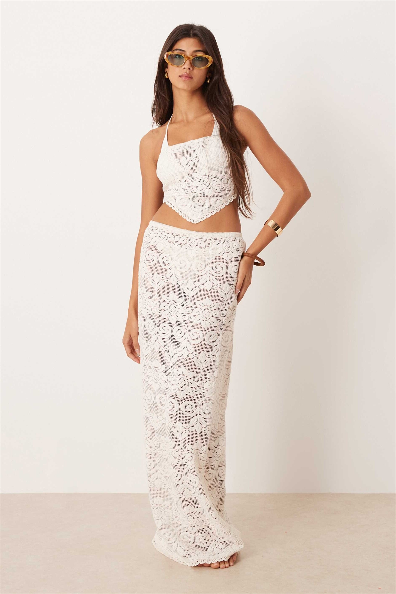 Макси-юбка из кружева, связанная крючком, цвета «Минетт»