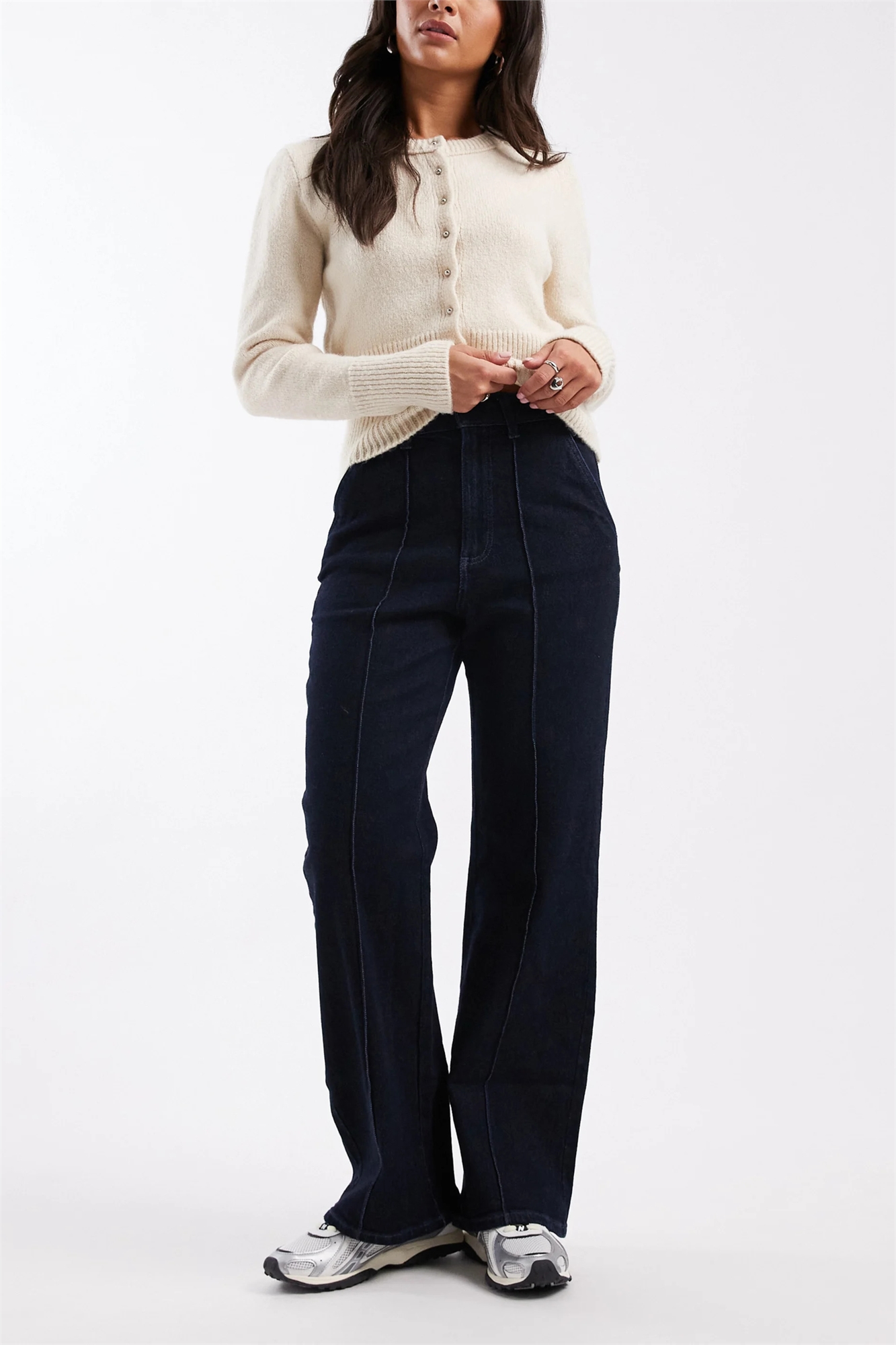 Джинсы с широкими брючинами и швом спереди