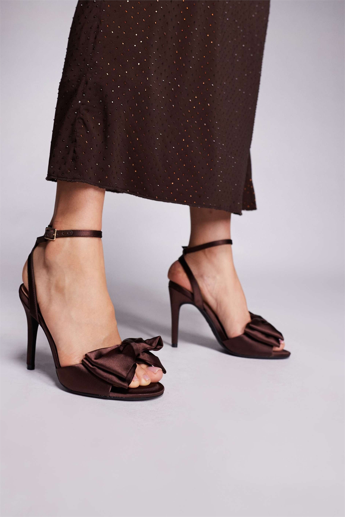 Сандалии на каблуке с объемным атласным бантом