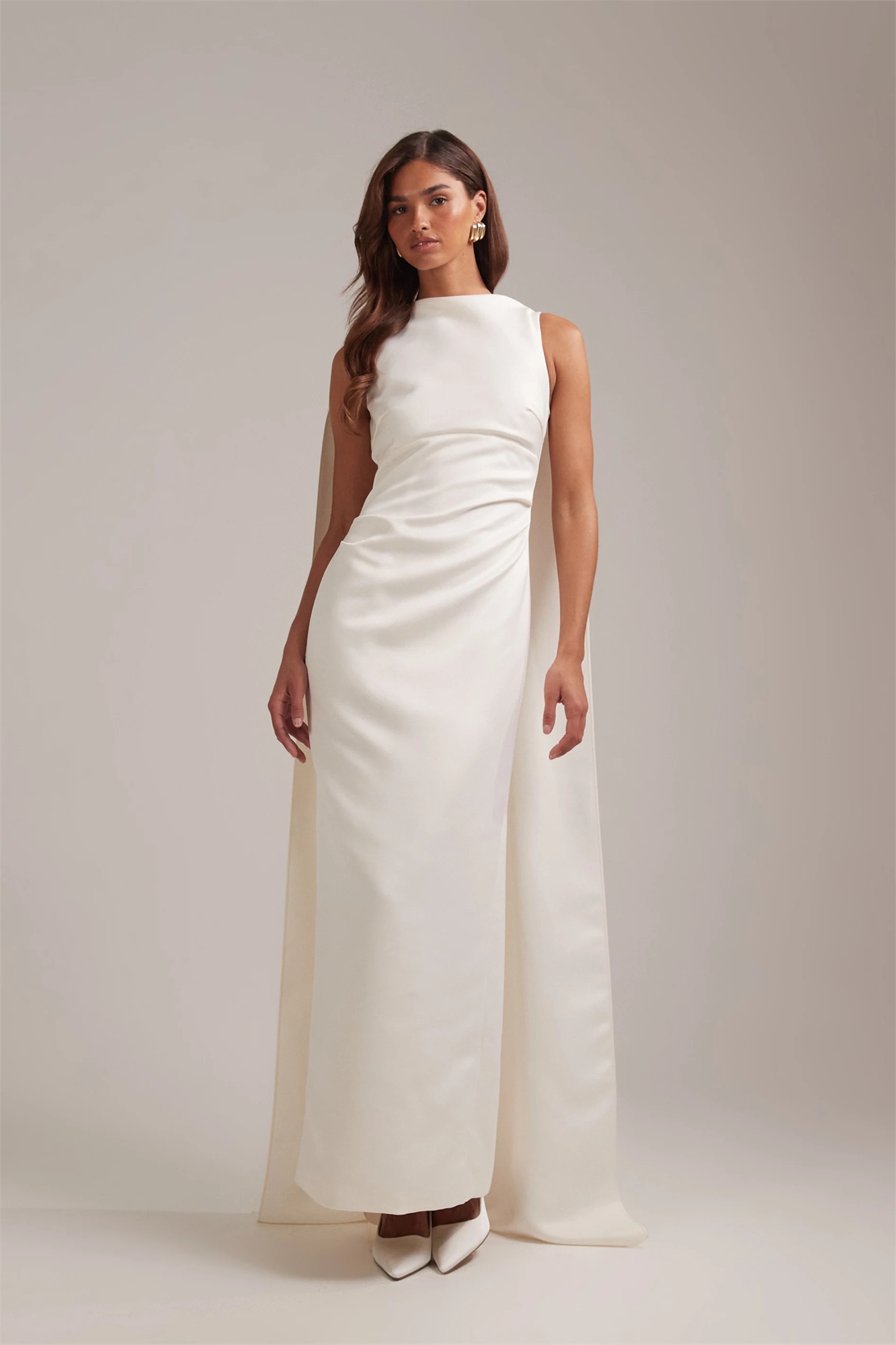Свадебное платье макси с высоким воротником и шлейфом