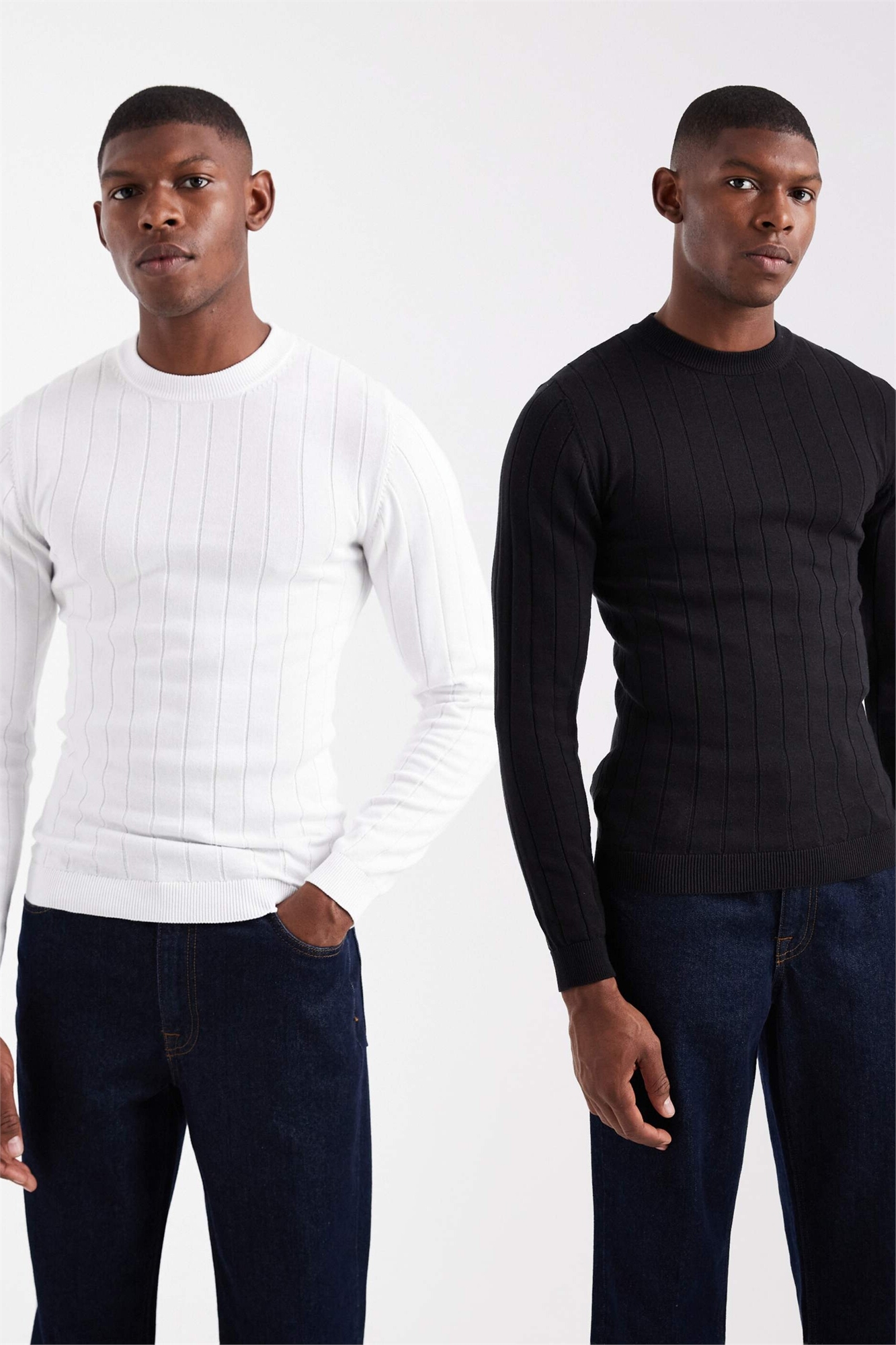 Набор из 2 трикотажных футболок с ребристым вырезом и облегающим кроем