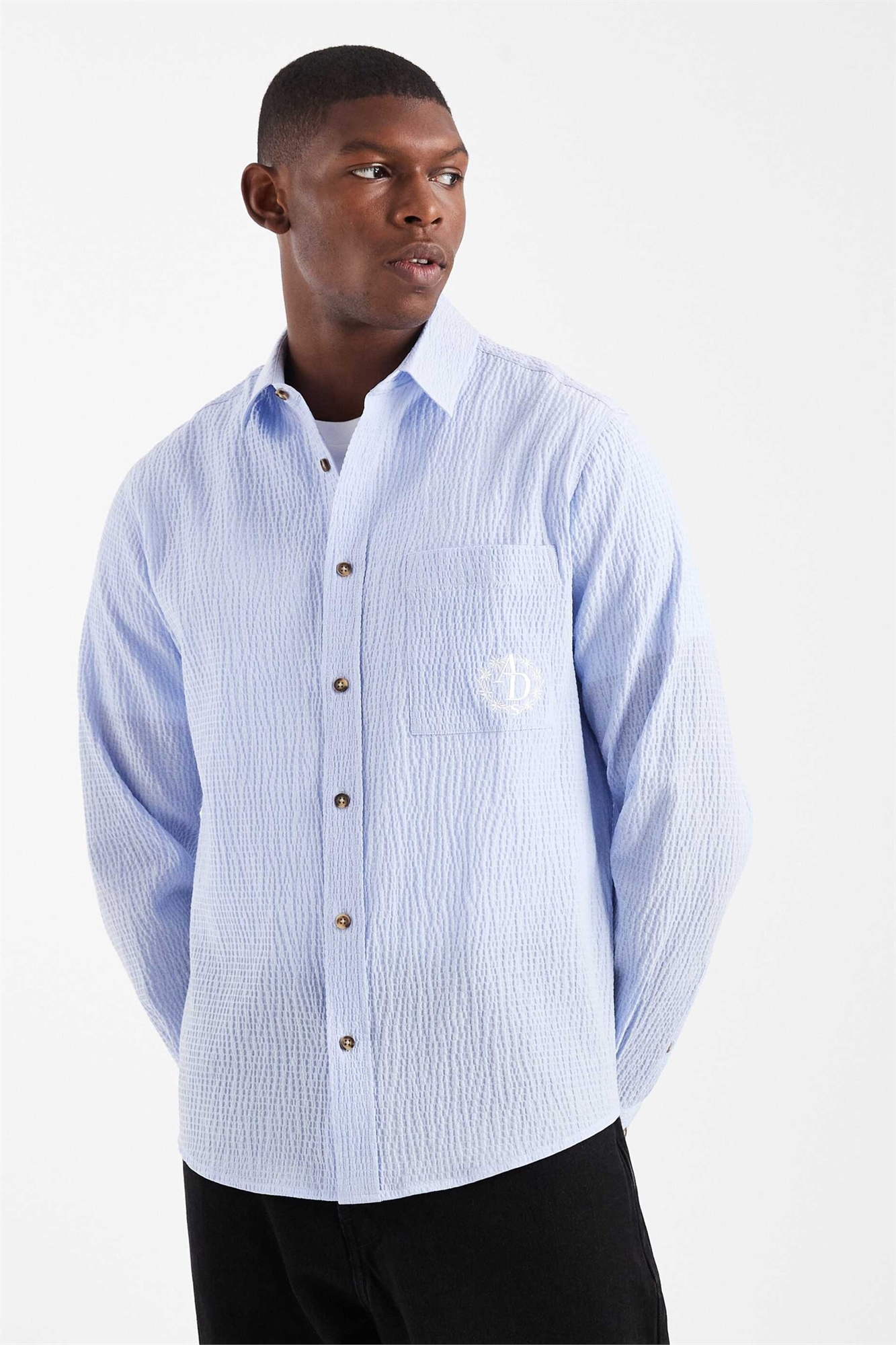 Рубашка свободного кроя из ткани «сирсакер» с вышивкой