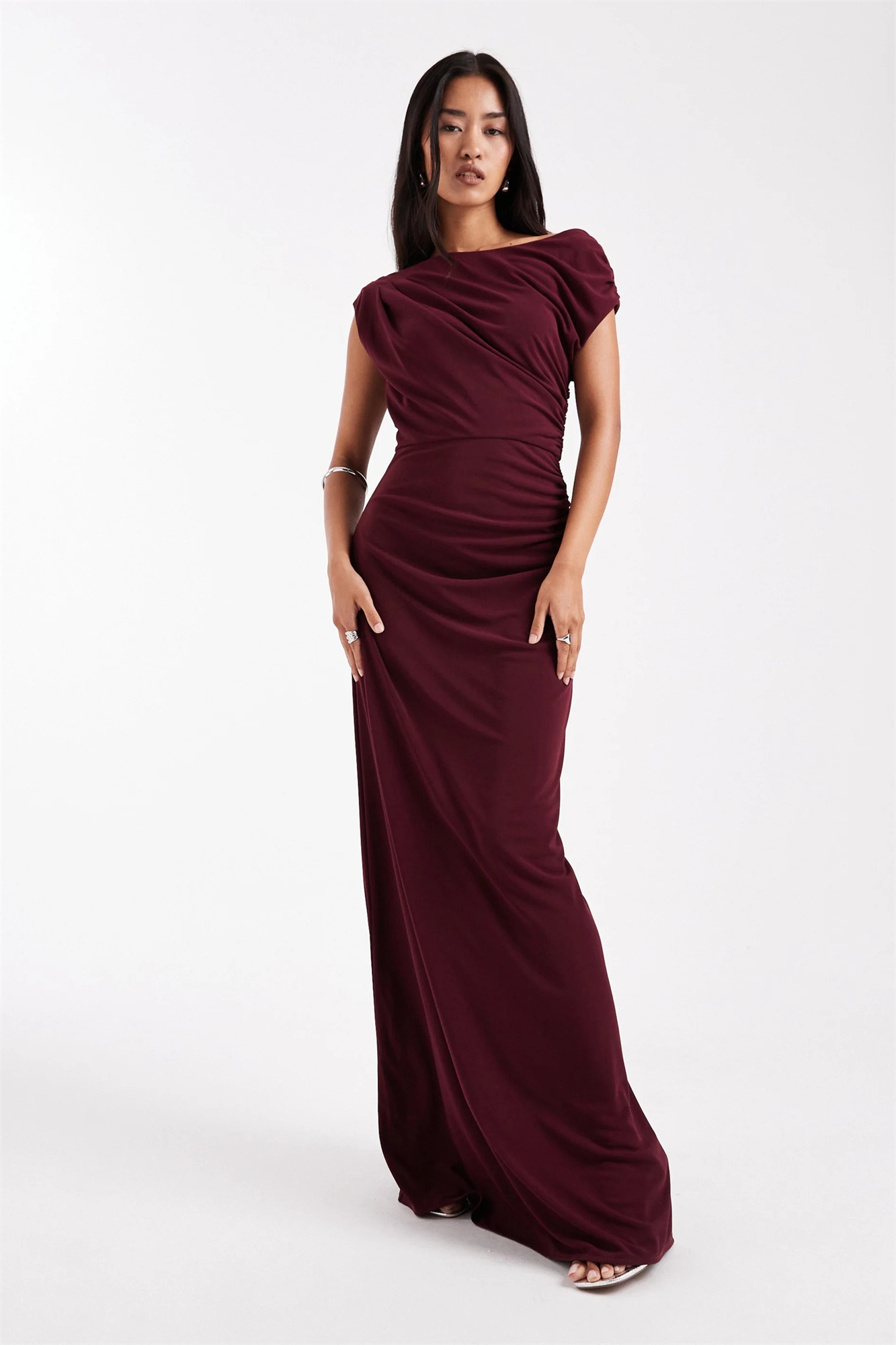 Макси-платье для подружек невесты с асимметричным вырезом на плече и рюшами