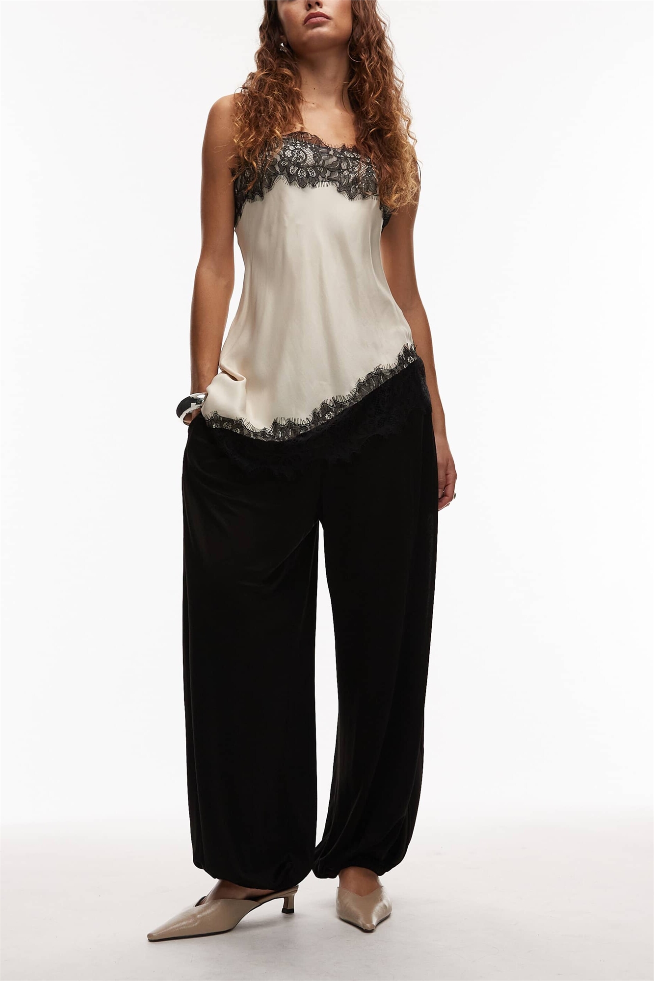 Брюки-балоны с блестящей отделкой, надеваемые через голову
