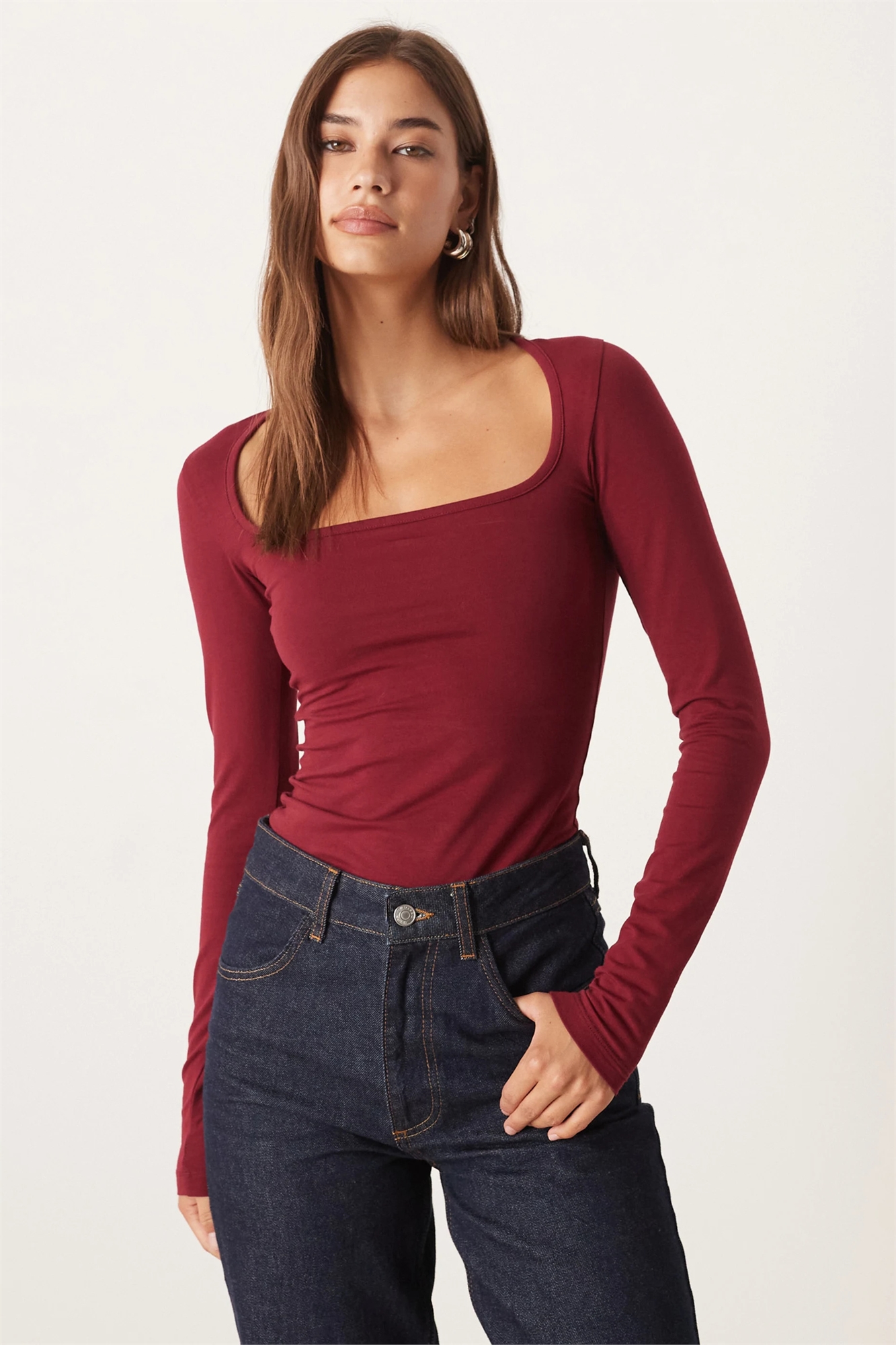 Топ с квадратным вырезом и длинными рукавами