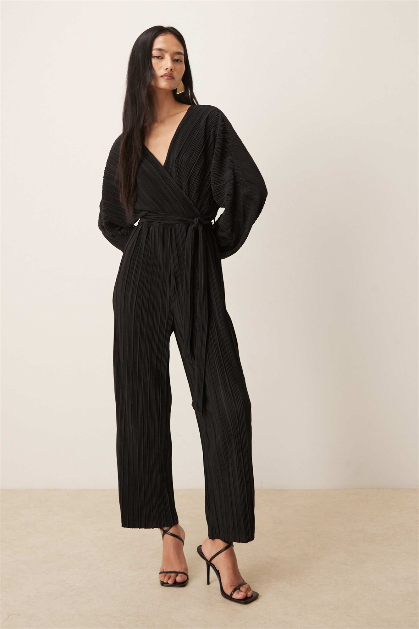 Комбинезон с длинными рукавами, завязкой на талии и плиссировкой