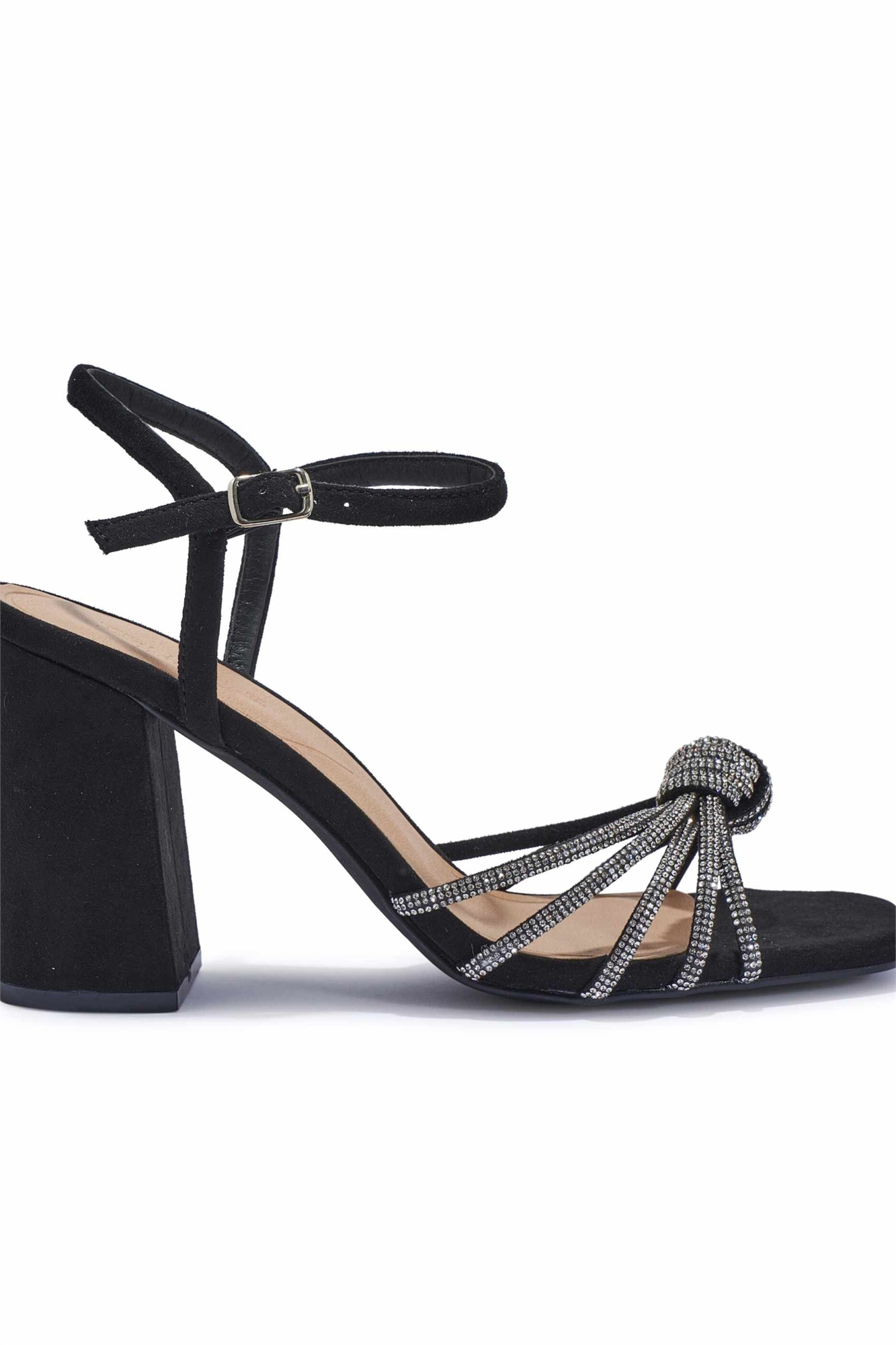 Сандалии с украшением из страз и широким каблуком