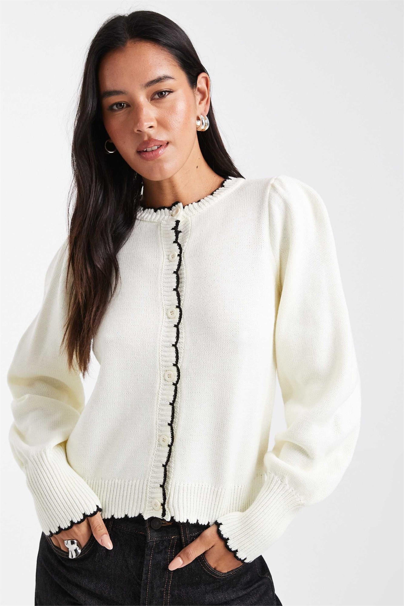 Кардиган с рукавами-буфетками и стежком «одеяло»