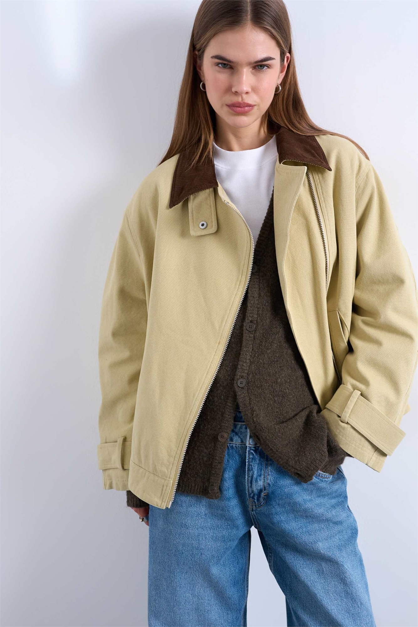 Куртка с застежкой-молнией спереди и воротником из контрастного шнура