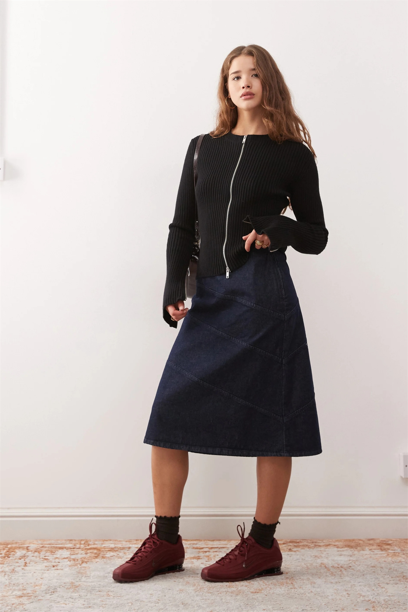 Джинсовая юбка-миди с акцентом на швах