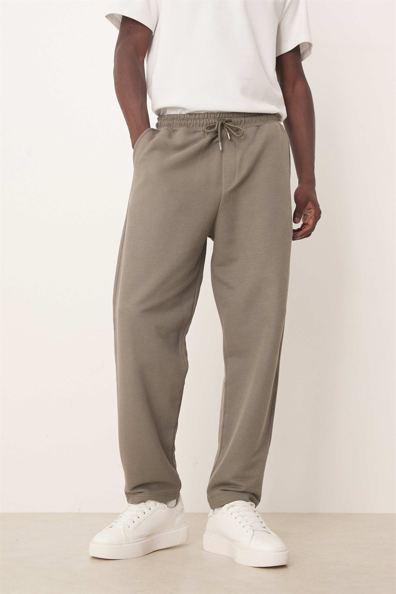 Свободные зауженные джоггеры из хлопка пике цвета хаки