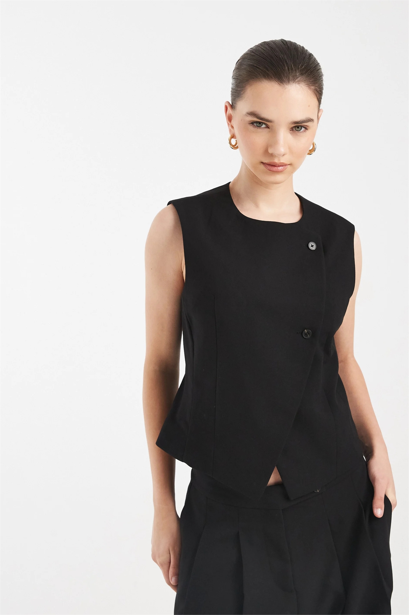 Жилет с асимметричной застежкой на пуговицах, скроенный по фигуре