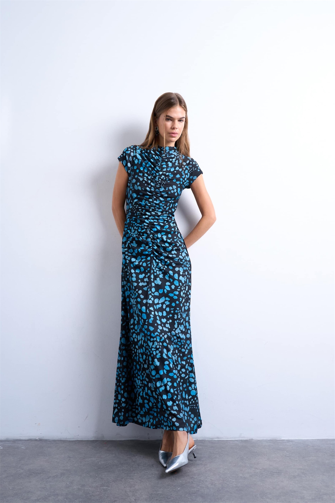 Макси-платье с рукавами-крылышками и рюшами в стиле «анимал-принт»