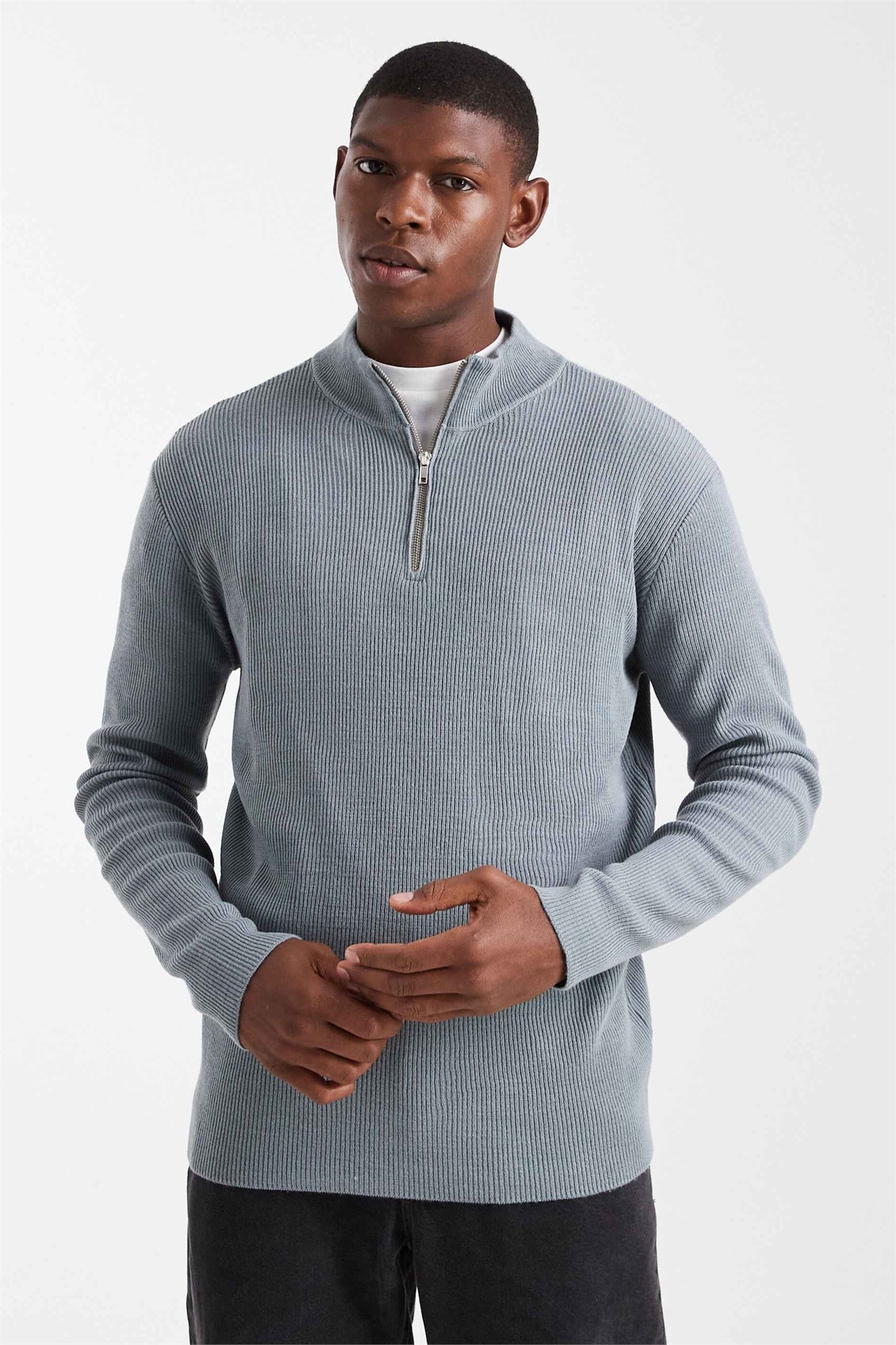 Свитер из трикотажа с полосками и полузастежкой-молнией